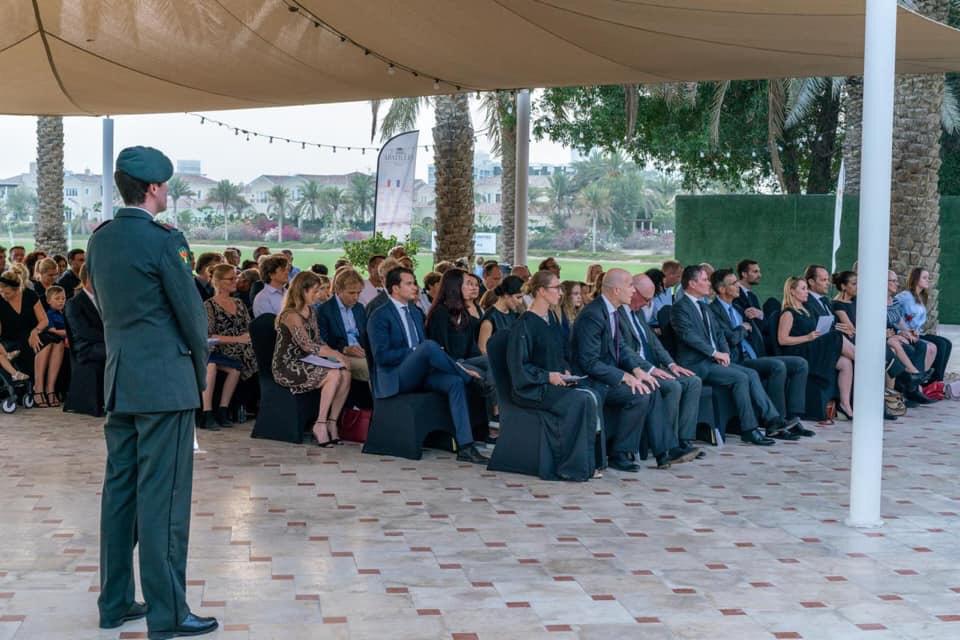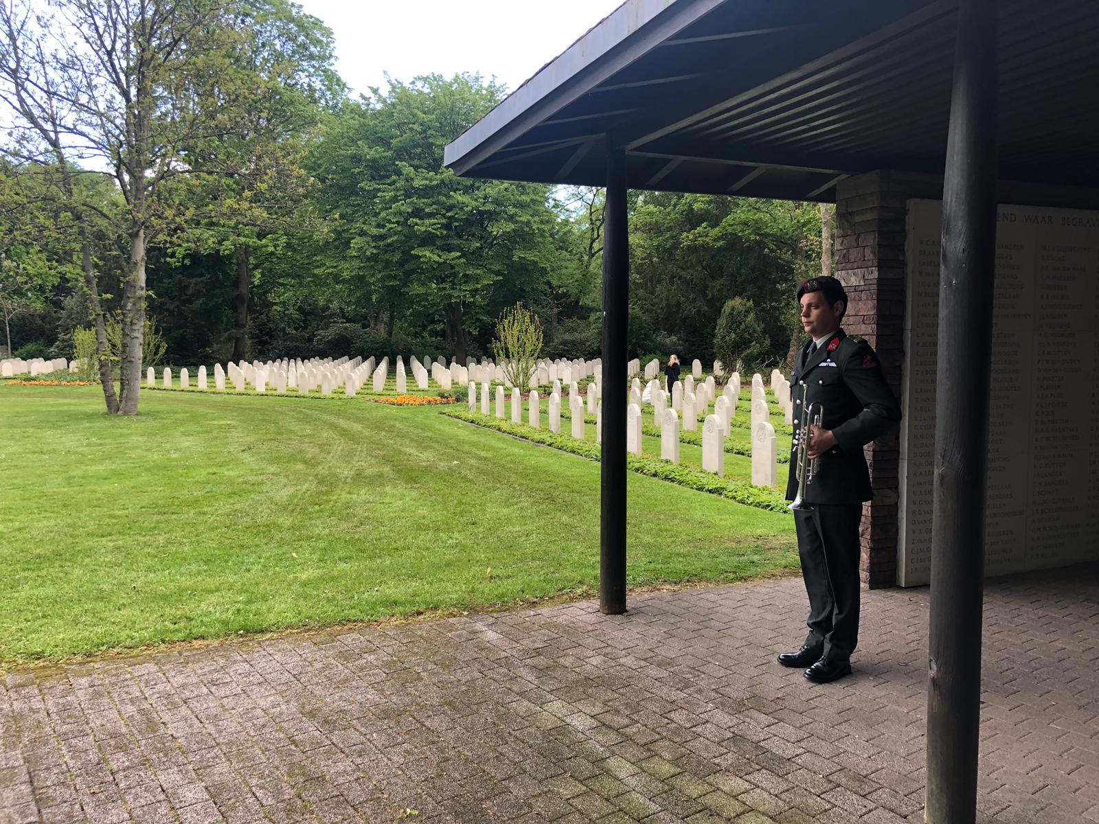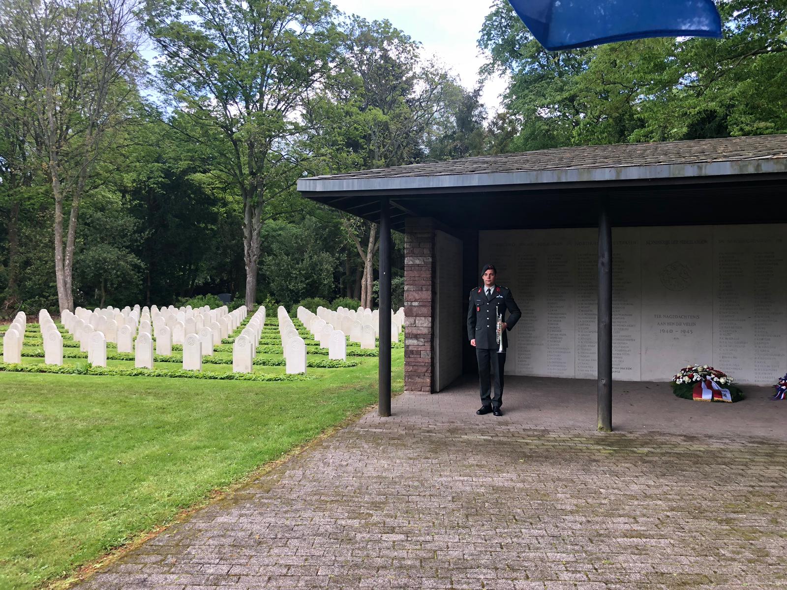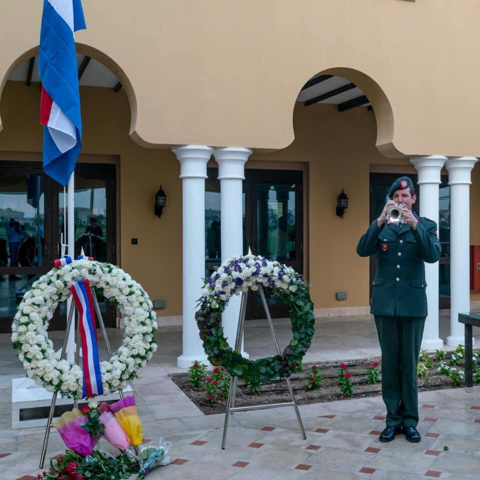 Een uniek moment was er voor korporaal Elwin Smit. Hij mocht de signalen ten gehore brengen in het verre Dubai. Bij Kamp NL op de Al Minhad Air Base Dubai (detachement: FSE Mirage Detachment 24) in de middag voorafgaand aan de 4 mei herdenking was hij te gast. Later op de dag was hij getuige van een mooie herdenking bij de Dubai Polo & Equestrian club. In Dubai waren de ambassade en het consulaat-generaal, samen met Language One, de Nederlandse Club Dubai, de Nederlandse Business Council Dubai en de Northern Emirates, en BeNeLux Business Council, Abu Dhabi, gastheer van Remembrance Day voor de Nederlandse gemeenschap. De activiteiten omvatten ook een prachtig gedicht van een van de studenten van Language One. Onze koporaal Elwin Smit had een drukke werk- en reisdag maar het was vooral een indrukwekkende dag!