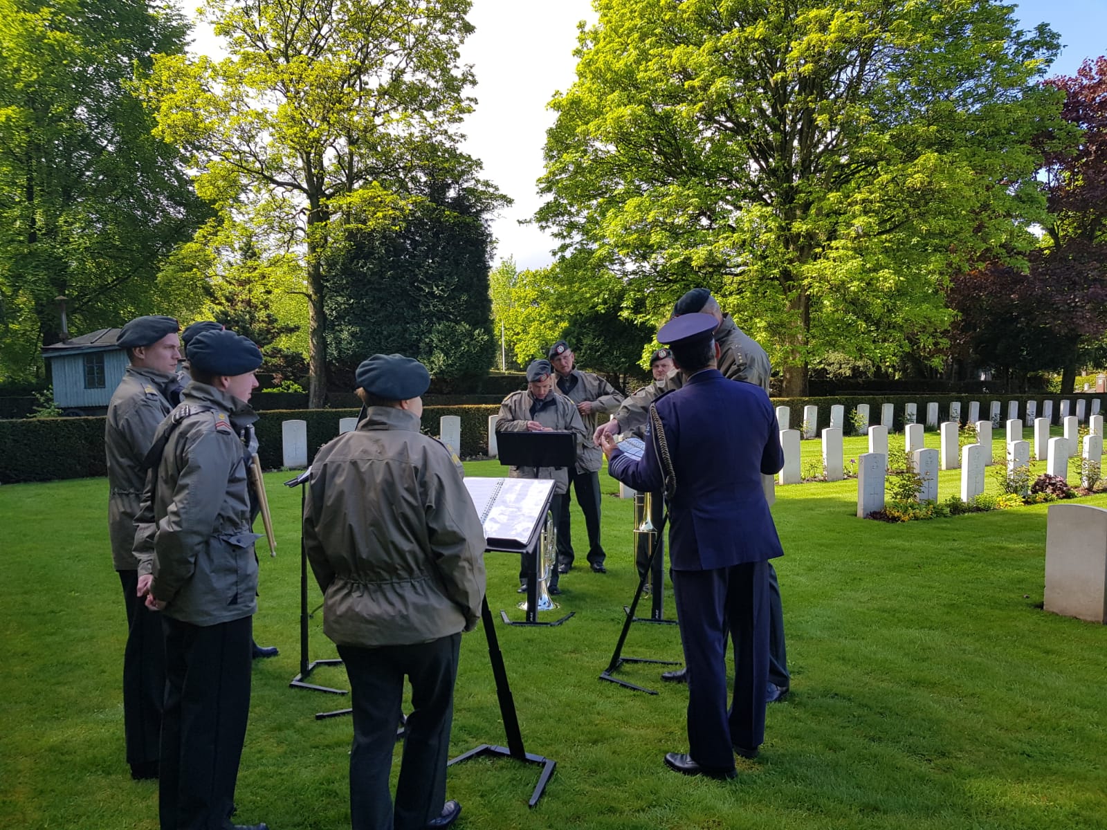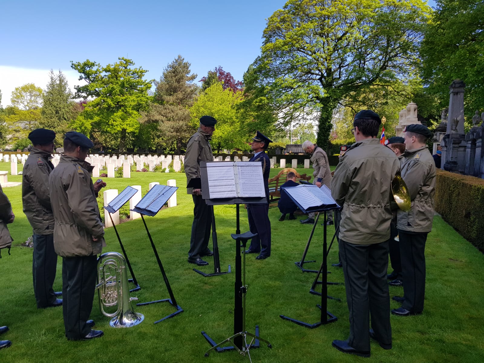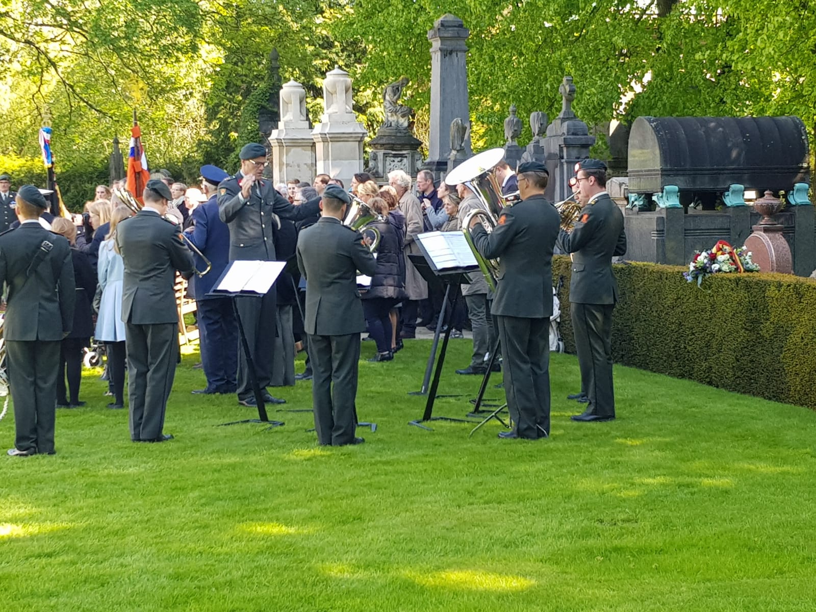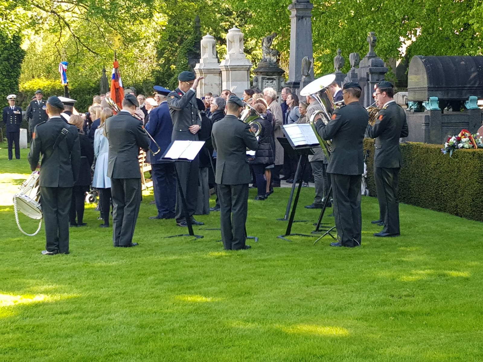 Op 4 mei verleende een ander koperensemble van de FKNR haar medewerking aan de 4 mei herdenking in Brussel. De muzikanten werden gastvrij ontvangen en geleid naar de begraafplaats in Evere waar zich ook een Ereveld bevindt met een aantal Nederlandse oorlogsgraven. Onder de muzikale leiding van kapitein Alfred Willering werd de plechtigheid muzikaal ingeleid. De koralen zorgde voor een passende ambiance, waarbij de aanwezigen de gesneuvelden eerwaardig konden herdenken. Aansluitend was het koperensemble uitgenodigd voor een lunch in het werkgebouw van de Nederlandse Ambassade.
