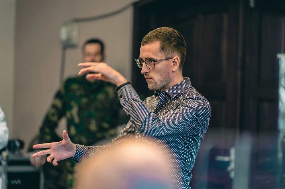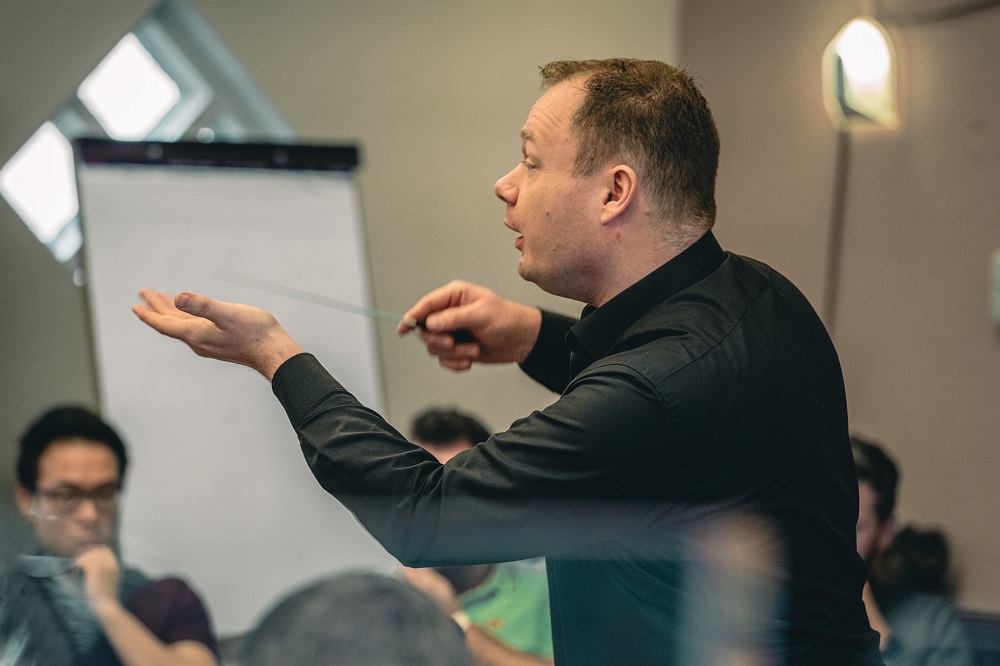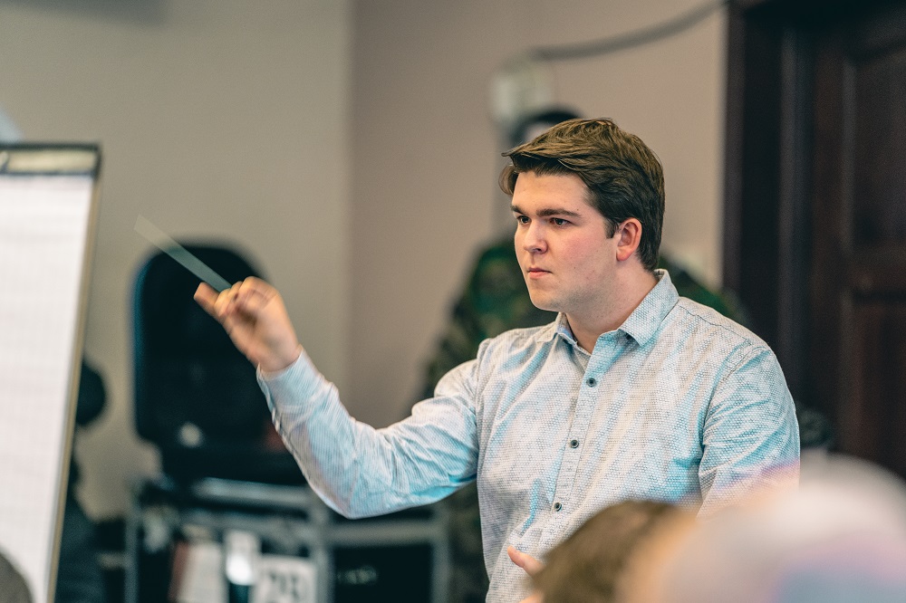 In een orkest staat het belang van het collectief voorop en een goede dirigent bewaakt dit en neemt hierin de leiding. Het orkest vastpakken wanneer nodig en loslaten wanneer zaken lopen, vormden daarom een terugkerend thema. Een ander belangrijk onderwerp waar een dirigent mee kan werken, zijn de kleuren in het orkest. Een dirigent kan, door muzikanten verbaal of non-verbaal te vragen om sterker, zachter, scherper of juist ronder te spelen, een mix van kleuren te maken. Het werk ‘Fleodrodum’ van componist Eric Swiggers biedt studenten bij uitstek de gelegenheid om hiermee aan de slag te gaan. Door de manier waarop Swiggers het eerste deel opbouwt, wordt er steeds een nieuwe kleur toegevoegd.