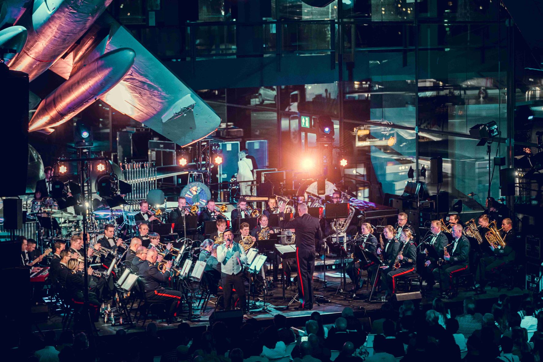 De Nacht van de Militaire Muziek is dé plek waar alle Nederlandse militaire orkesten samenkomen. Tussen de vliegtuigen, de voertuigen en de militaire historie die te vinden is in het Nationaal Militair Museum te Soesterberg verrijzen ieder jaar maar liefst zeven podia waar gedurende ‘De Nacht’ de meest bijzondere optredens plaatsvinden. Van traditioneel tot wereldmuziek en van jazz tot klassiek; er is voor ieder wat wils. Waar de vorige editie nog via een livestream plaatsvond, kon het publiek nu gelukkig weer in grote getale live aanwezig zijn tijdens het evenement. Militaire muziek als verbindingselement tussen mensen en culturen vormde de rode draad door de complete avond. Er werd aandacht besteed aan cultuur uit eigen land en aan cultuur uit gebieden waar Defensie op vredesmissie is geweest.